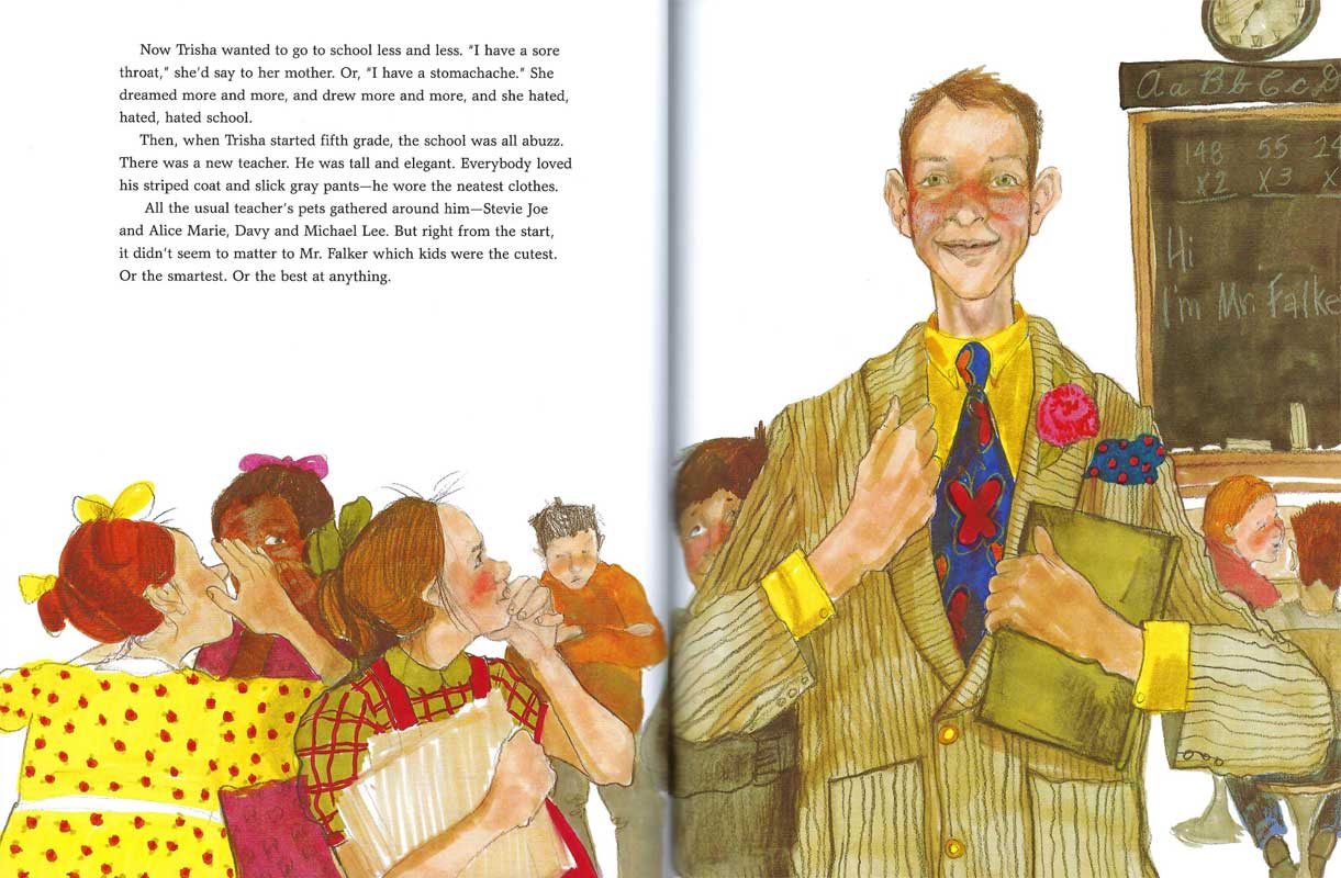 Patricia Polacco is now one of America's most loved children's book creators, but once upon a time, she was a little girl named Trisha starting school. Trisha could paint and draw beautifully, but when she looked at words on a page, all she could see was jumble. It took a very special teacher to recognize little Trisha's dyslexia: Mr. Falker, who encouraged her to overcome her reading disability. Patricia Polacco will never forget him, and neither will we.
