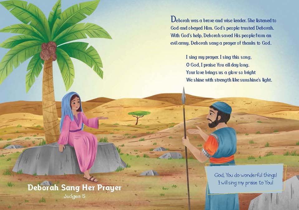 - features stories of Bible heroes' prayers and praises,
